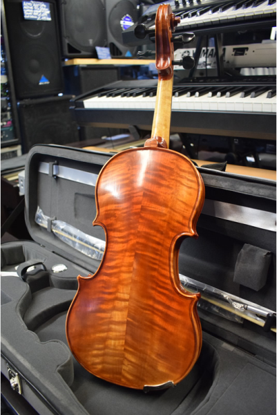 Very attractive, with a two-piece flame maple back.